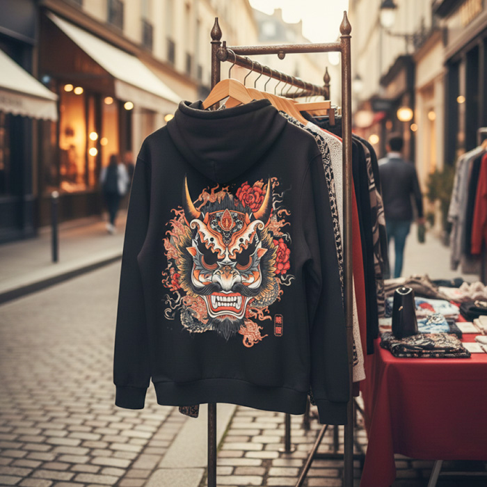 Unleash the spirit of the Orient with our Japanese Irezumi Mask Hoodie. This isn’t just a sweatshirt; it’s a piece of wearable art for those who live on the edge of style. Featuring a large, intricate design of a traditional Oni or Hannya mask, this hoodie instantly injects bold, iconic power into your streetwear rotation. Perfect for tattoo lovers and anyone who appreciates complex Japanese mythology.