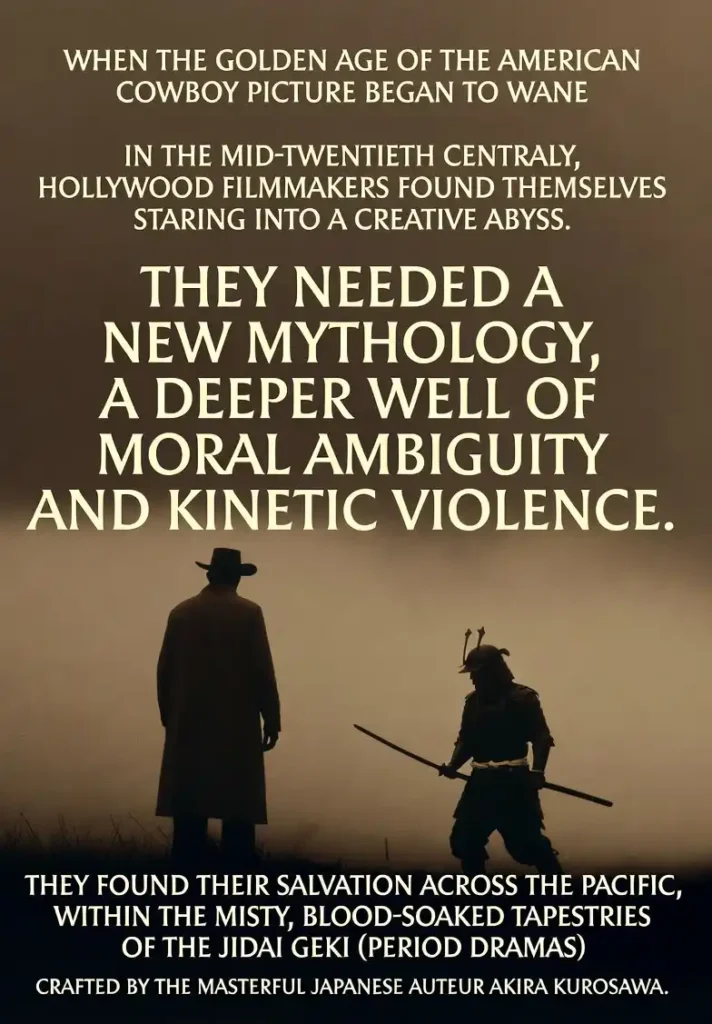 When the golden age of the American cowboy picture began to wane in the mid-twentieth century, Hollywood filmmakers found themselves staring into a creative abyss. They needed a new mythology, a deeper well of moral ambiguity and kinetic violence. They found their salvation across the Pacific, within the misty, blood-soaked tapestries of the jidaigeki (period dramas) crafted by the masterful Japanese auteur Akira Kurosawa.